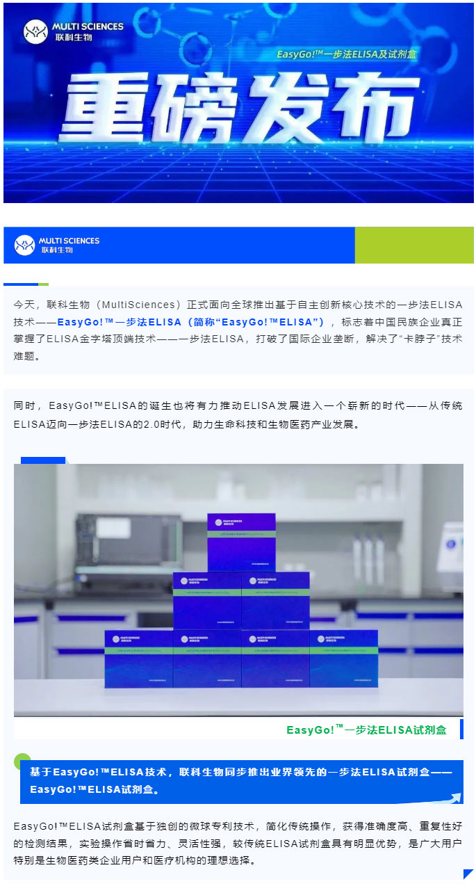 重磅发布|打破国际垄断!联科生物自主创新推出EasyGo!™一步法ELISA及试剂盒